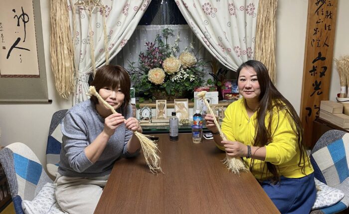 今日は、仲良しリピーターのお二人様が、鈴緒のワークショップにいらっしゃいました。2週連続で精麻の沼にドップリとはまっていますね。今日も、ミラクルな話から、様々な話題も出て、楽しい時間で