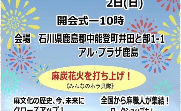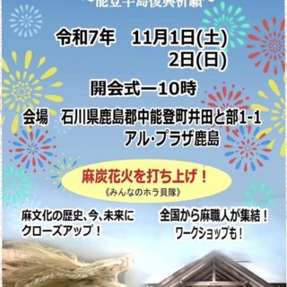 いよいよ今週末は、麻フェスティバルです。私も応援で参加してきます。麻炭の花火も打ち上げるようで、とっても楽しみです。
