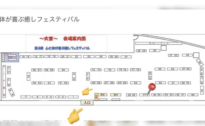 私は47番です、入り口から右に行って、壁際の位置です。