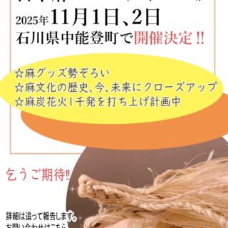 ちょっと先の話ですが・・・、麻フェスティバルです。こちらは私も、麻仲間も参加するので、現地で会いましょう。麻炭の花火が楽しみな感じです。